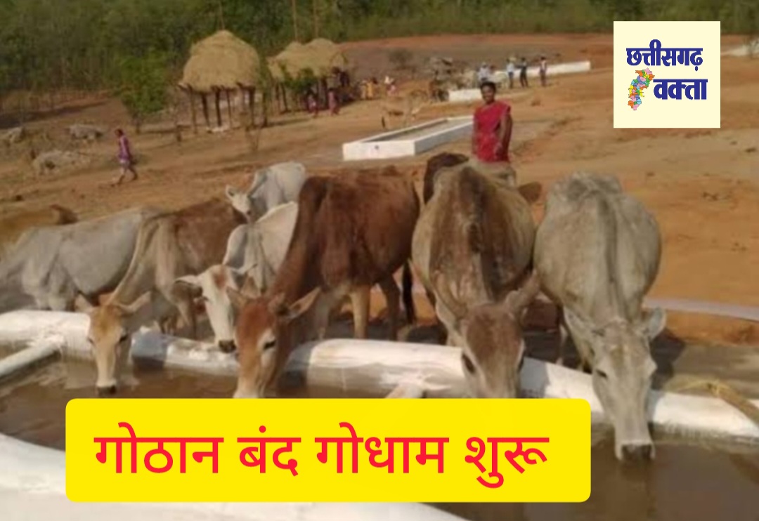 छत्तीसगढ़ में आज से होगी गौधाम योजना की शुरुआत जिसके तहत अलग-अलग जिलों और ब्लॉकों में गौधाम/गौशाला बनाए जाएंगे l गौ धाम में आवारा और जब्त किए गए पशुओं को रखा जाएगा l पशुओं के रहने के लिए सुरक्षित शेड, साफ-सफाई, मेडिकल और पानी की व्यवस्था होगी तथा गायों के लिए नियमित चारा, भूसा और हरा चारा उपलब्ध कराया जाएगा l वहीं समय-समय पर टीकाकरण और स्वास्थ्य जांच होगी l प्रदेश में प्रत्येक विकासखण्ड में 10 गौधाम तथा पूरे राज्य में 1460 गौधाम बनेंगे ल वर्तमान में 36 गौ धामों की प्रशासकीय स्वीकृति प्राप्त हो चुकी है तथा 116 गौ धामों की प्रशासकीय स्वीकृति प्रक्रियाधीन है l प्रदेश में प्रथम चरण में कुल 152 गौ धामों की स्थापना की जा रही है l