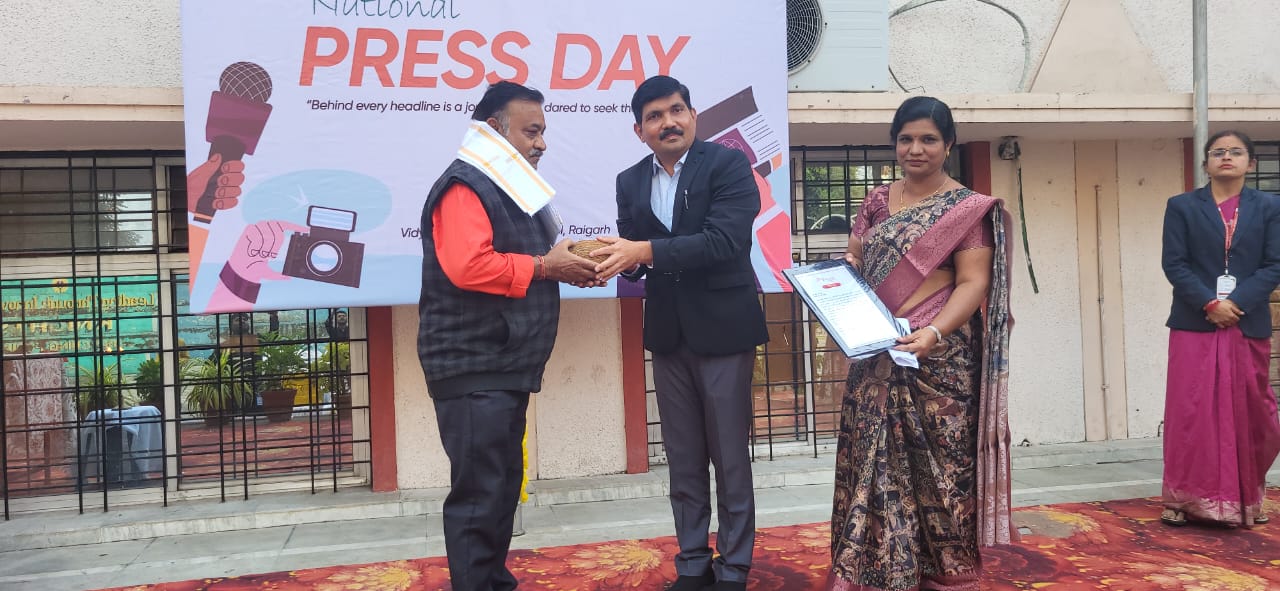 रायगढ़ । राष्ट्रीय प्रेस दिवस के अवसर पर रायगढ़ के विद्या विकास कॉन्सेप्ट स्कूल द्वारा एक सराहनीय और प्रेरणादायक परंपरा निभाई गई। इस विशेष दिन को और अर्थपूर्ण बनाते हुए विद्यालय प्रबंधन ने शहर के सभी सम्मानित पत्रकार साथियों के लिए पत्रकार सम्मान समारोह का आयोजन किया।शहर के अतरमुड़ा में संचालित विद्या विकास कॉन्सेप्ट स्कूल ने नेशनल प्रेस डे मनाते हुए स्कूल के मुख्य प्रशासन अधिकारी संजीव कुमार बाबू ने प्रेस एवं मीडिया जगत के योगदान को हृदय से नमन करते हुए कहा कि प्रेस दिवस सिर्फ एक दिन नहीं, बल्कि लोकतंत्र की सच्ची शक्ति का सम्मान है। मीडिया समाज का दर्पण है और भविष्य निर्माण में उसकी भूमिका अत्यंत महत्वपूर्ण है। इसी उद्देश्य से प्रेसवार्ता एवं सम्मान समारोह के माध्यम से हम पत्रकार साथियों के प्रति कृतज्ञता व्यक्त करते हैं।उन्होंने कहा कि पत्रकार न केवल समाचारों को जनता तक पहुँचाते है, बल्कि समाज में जागरूकता, शिक्षा, पारदर्शिता और सकारात्मक बदलाव लाने में भी महत्वपूर्ण भूमिका निभाते है। कार्यक्रम के मुख्य अतिथि नवीन शर्मा (सचिव, प्रेस क्लब) और वरिष्ठ पत्रकार पुनीराम रजक ने विद्यालय की इस पहल की सराहना करते हुए कहा कि ऐसे आयोजन समाज में मीडिया की अहमियत को मजबूती देते हैं। समारोह का समापन स्कूल की प्राचार्य द्वारा धन्यवाद ज्ञापन के साथ हुआ, जहाँ विद्यालय प्रबंधन ने आगे भी इसी तरह समाजिक मूल्यों और लोकतांत्रिक परंपराओं को मजबूत करने की प्रतिबद्धता व्यक्त की।कार्यक्रम में प्रेस क्लब रायगढ़ के सदस्यों के अलावे विद्या विकास कॉन्सेप्ट स्कूल में सेवारत शिक्षक-शिक्षिका और स्टॉप भी विशेष तौर पर मौजूद रहे।